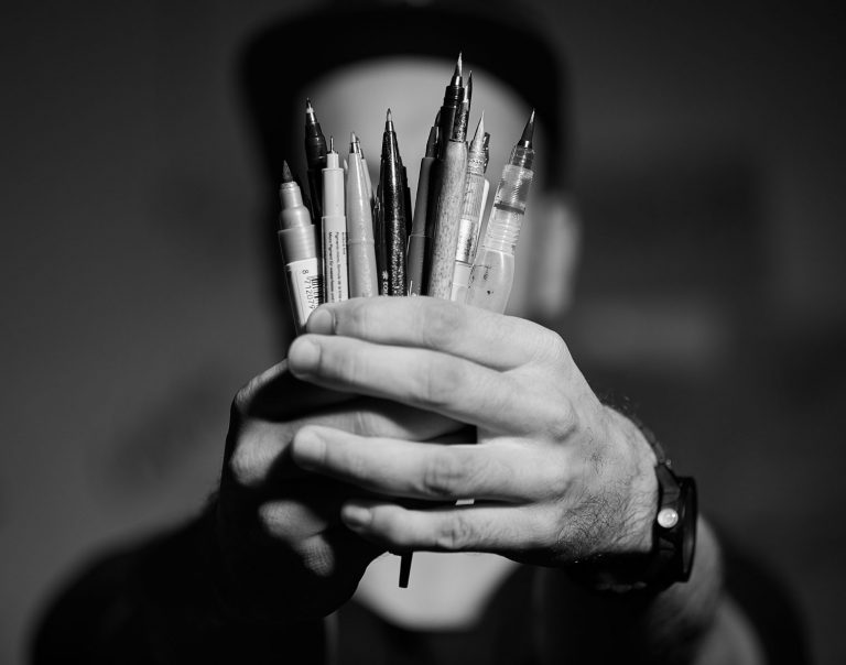 Mi romance por las letras nace con el graffiti. Siempre he tenido inquietud por la letra en cualquiera de sus aplicaciones y orienté mis estudios al diseño gráfico para desarrollar así mi pasión y convertirla en mi trabajo.Una vez matizada esta definición, siempre me ha fascinado todo lo que tenga que ver con las letras en cualquiera de sus aplicaciones. Enfoqué mis estudios al diseño gráfico, pero no fue hasta hace unos años cuando me decidí a estudiar caligrafía y a día de hoy sigo aprendiendo. Intento asistir a clases con los mejores y no pasa un solo día sin que haga algo de práctica, intento ser lo mas honesto conmigo mismo, localizando mis errores en esa práctica diaria. Creo en esto como la única manera de avanzar.
