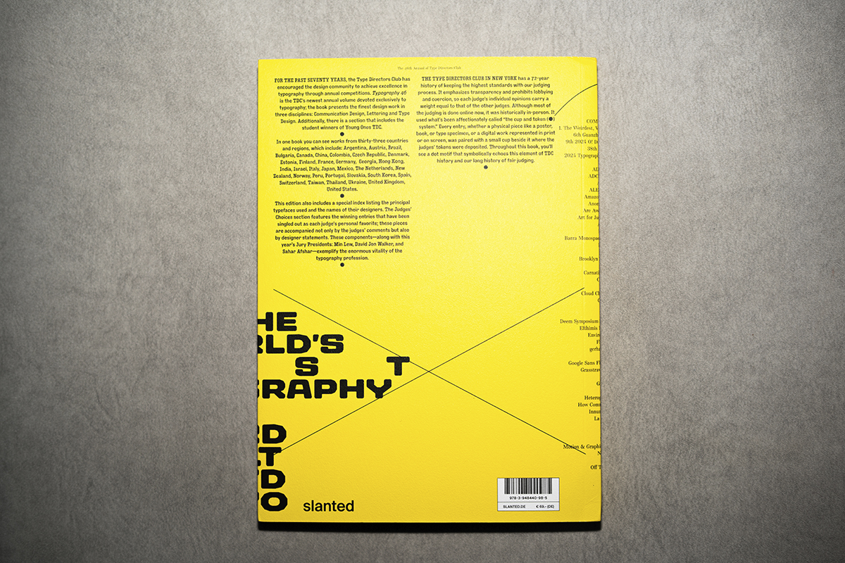 The World’s Best Typography, Typography 46 supone un recopilatorio contemporáneo y fresco en donde figuran proyectos de 33 países, entre ellos Alemania, Japón, Georgia, Israel, Nueva Zelanda, Perú, Tailandia, Ucrania, EEUU, entre otros.