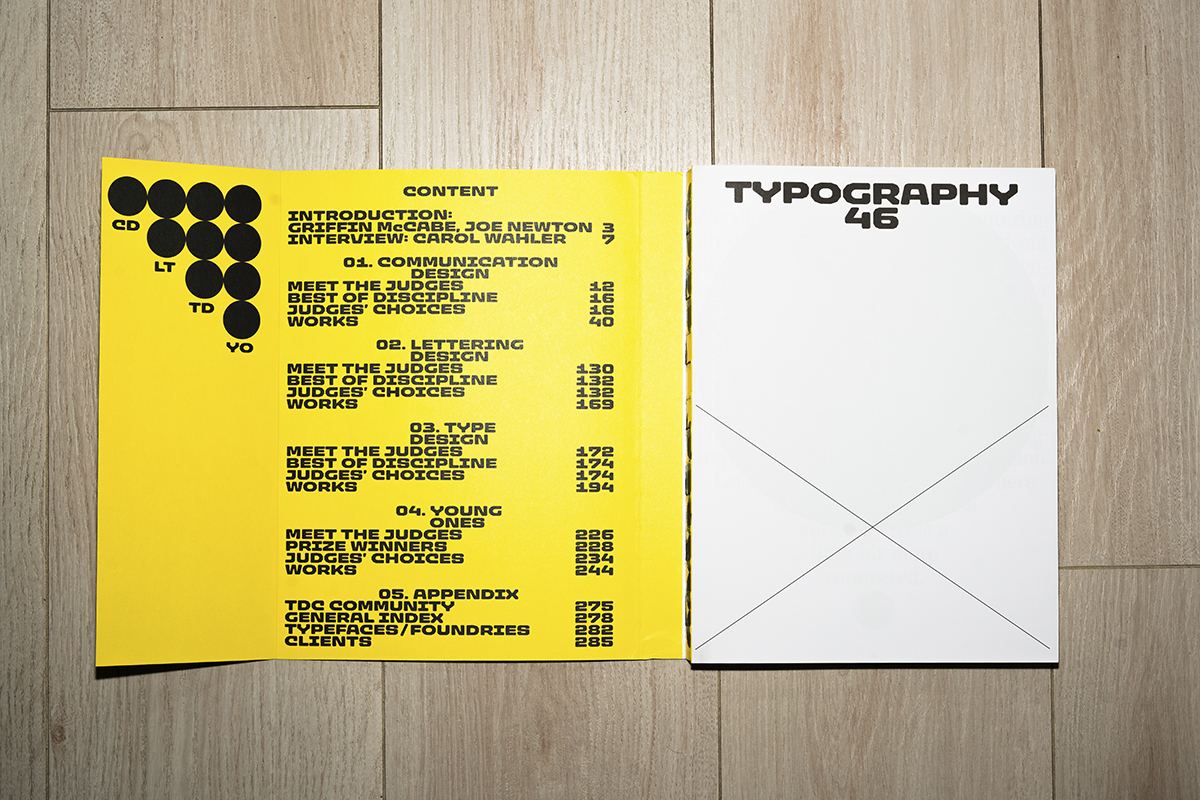 El libro cuenta con su propio sistema visual basado en círculos. A través de la cantidad de los mismos, sabremos si nos encontramos en las diferentes categorías: Communication design (1), Lettering design (2), Type design (3), Young ones (4).