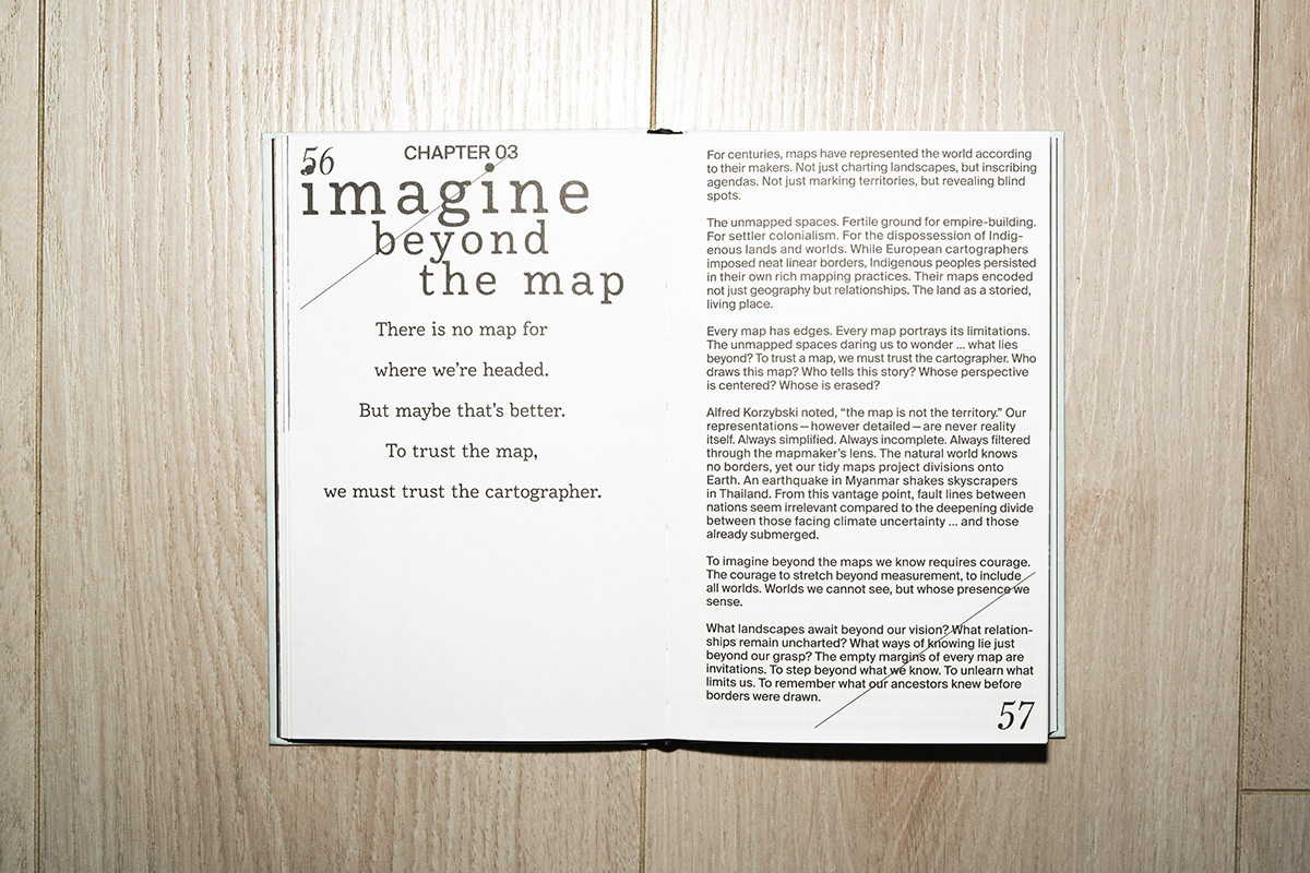 Embracing chaos and possibility in a planetary emergency ejemplifica cómo el diseño editorial puede estar al servicio de la narratividad y el ensayo. Este libro pretende hacernos reflexionar y pensar entre tanto caos de la situación climática que nos encontramos atravesando actualmente.