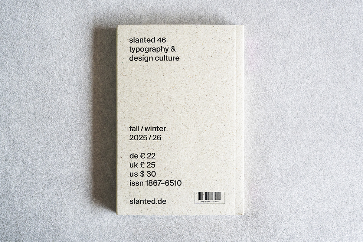 Sabemos que en materia de diseño, Slanted no falla. Nos encanta ver cómo en publicaciones de esta índole el diseño editorial posee una doble función: por un lado, servir de infraestructura a la hora de albergar experimentaciones tipográficas y por otro lado, ser en sí mismo otro motivo de admiración y «obra de arte en sí mismo» a través de la sobriedad y el minimalismo.