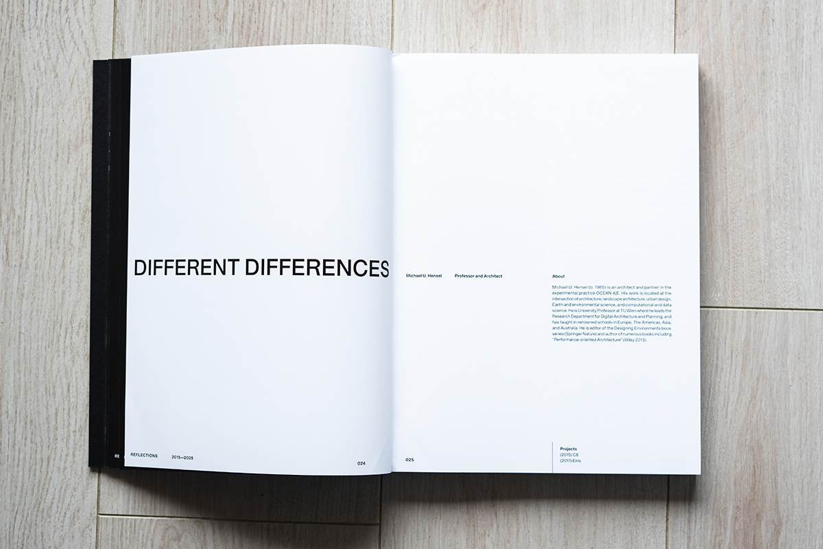 Void.Reflections no se dedica únicamente a recopilar trabajos a modo de archivo, si no que mediante diferentes conversaciones invita a perspectivas externas e interpretaciones sobre el trabajo ya realizado. Diseñado por el mismo estudio, nos encontramos con una invitación a leerlo pausadamente. El uso del espacio en blanco es una de las herramientas más importantes con las que un diseñador puede contar a la hora de construir una narrativa o un discurso.