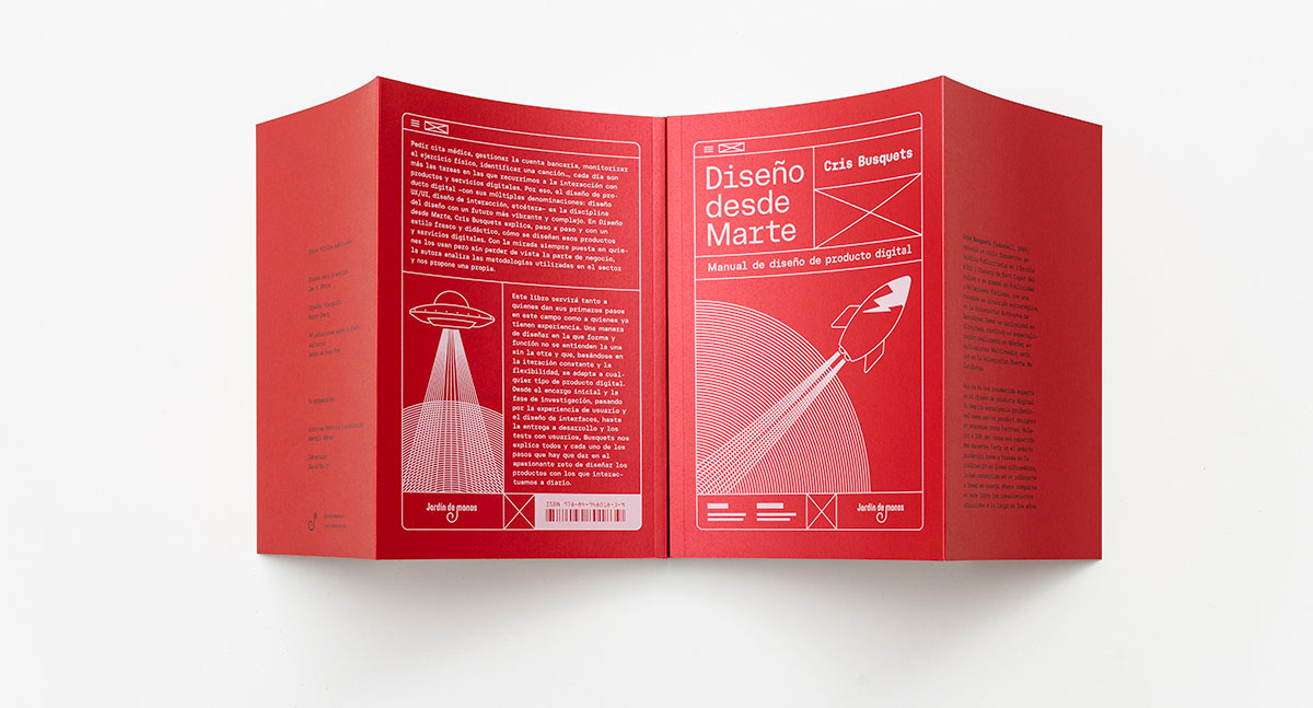 Diseño desde Marte. Manual de diseño de producto digital, escrito por la diseñadora y divulgadora Cris Busquets, es la nueva referencia de nuestra editorial amiga Jardín de Monos. Con una perspectiva tan rigurosa como fresca, el libro abarca el diseño de un producto digital, haciendo especial hincapié en los diferentes modelos de investigación que intervienen en la generación de una aplicación, web o en cualquier artefacto que necesite de la interacción «humano-pantallil».