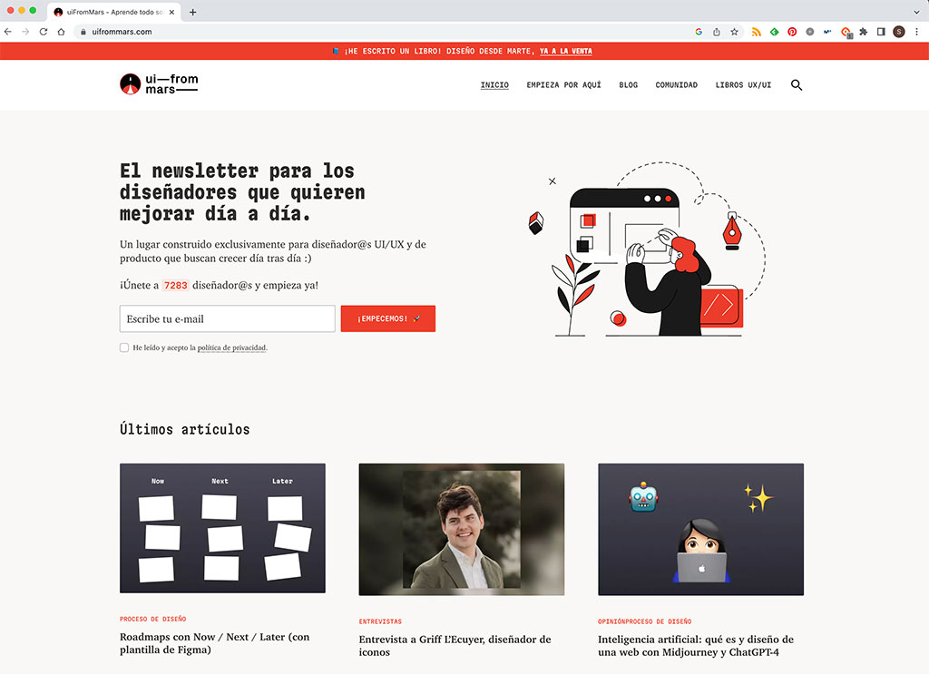 Cris Busquets es de sobra conocida por su labor divulgadora en el blog uiFromMars. Desde que lo creara en 2018, no ha dejado de crecer en visitas y suscripciones. Un testimonio más del creciente interés suscitado por todo lo que tiene que ver con el diseño UI/UX en los últimos años.
