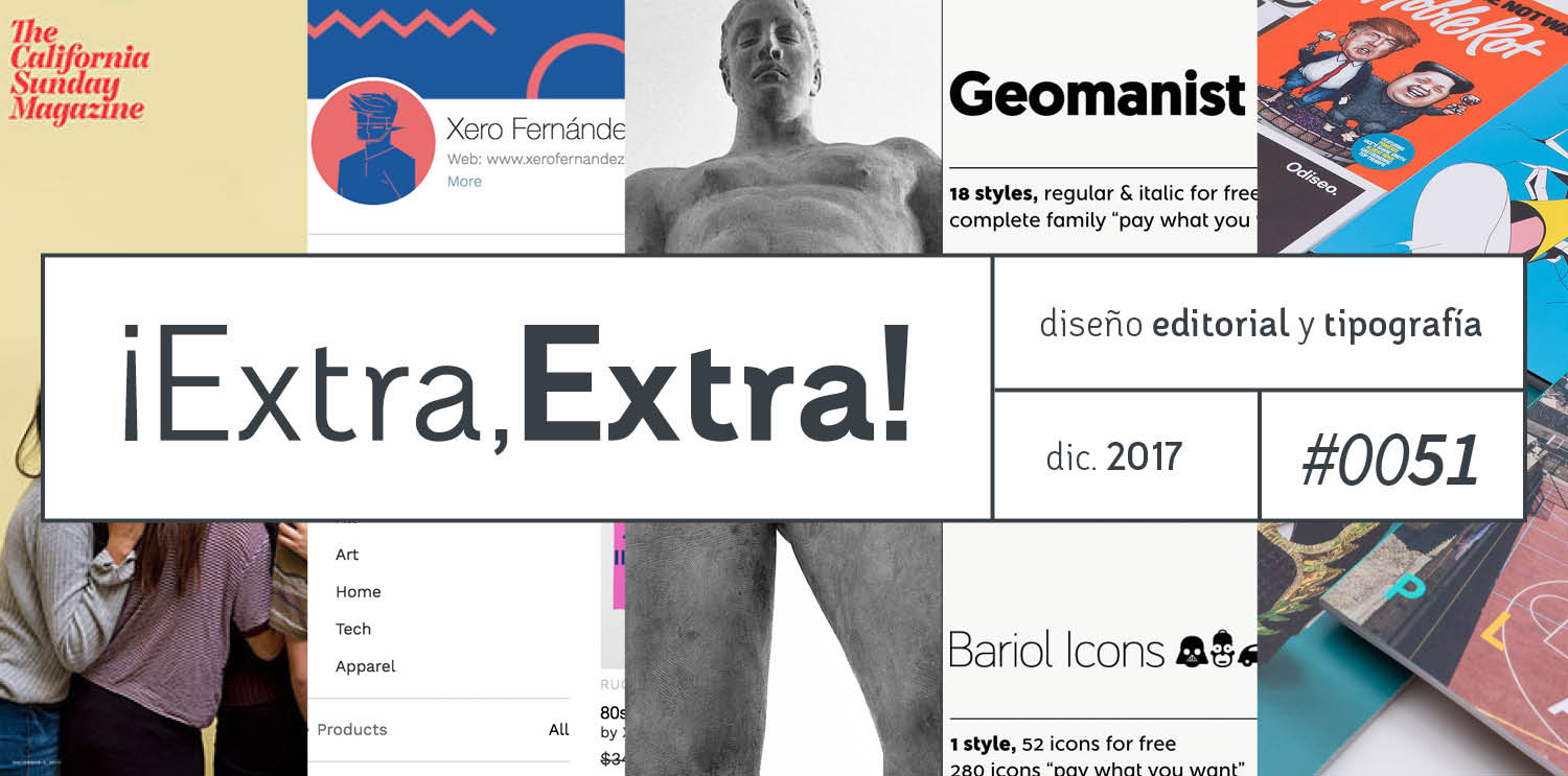 ¡Por fin es viernes! Y estamos mejor que en brazos porque ¡ya somos más de 2.000 locos del diseño editorial y la tipografía en nuestra cuenta de Facebook! YEAH!! 🙂 ¡Muchas gracias, muchachada! En este quincuagésimo primer Extra, extra, el último del 2017 (nos tomamos un pequeño descanso navideño), hemos recopilado 5 noticias muy, muy apetitosas.