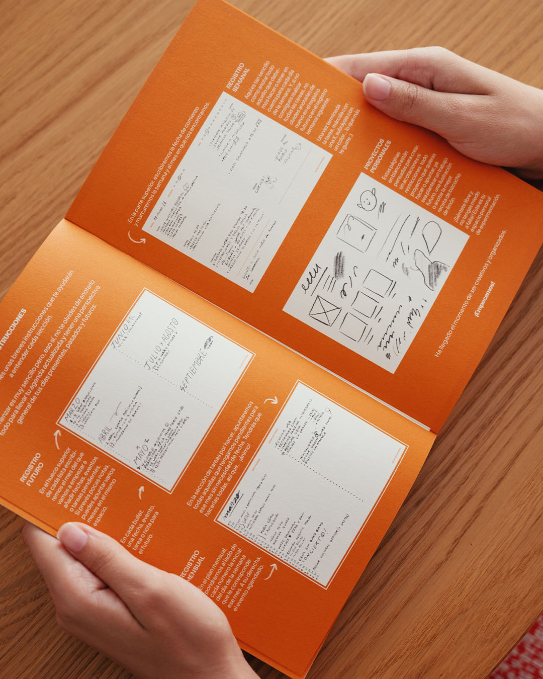 La agenda se divide en 4 secciones diferenciadas: registro futuro, registro mensual para doce meses, registro semanal para un año y la sección proyectos (mi favorita), que está completamente en blanco en donde podremos desarrollar trabajos personales.
