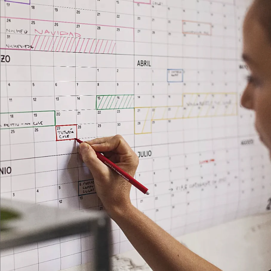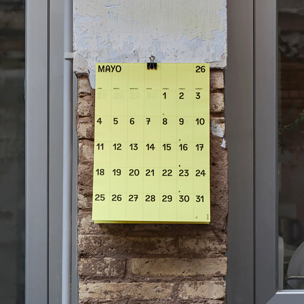 El primero de ellos es el calendario de pared. Destaca por su sencillez y funcionalidad, con una cuadrícula clara para apuntar lo que sea necesario.