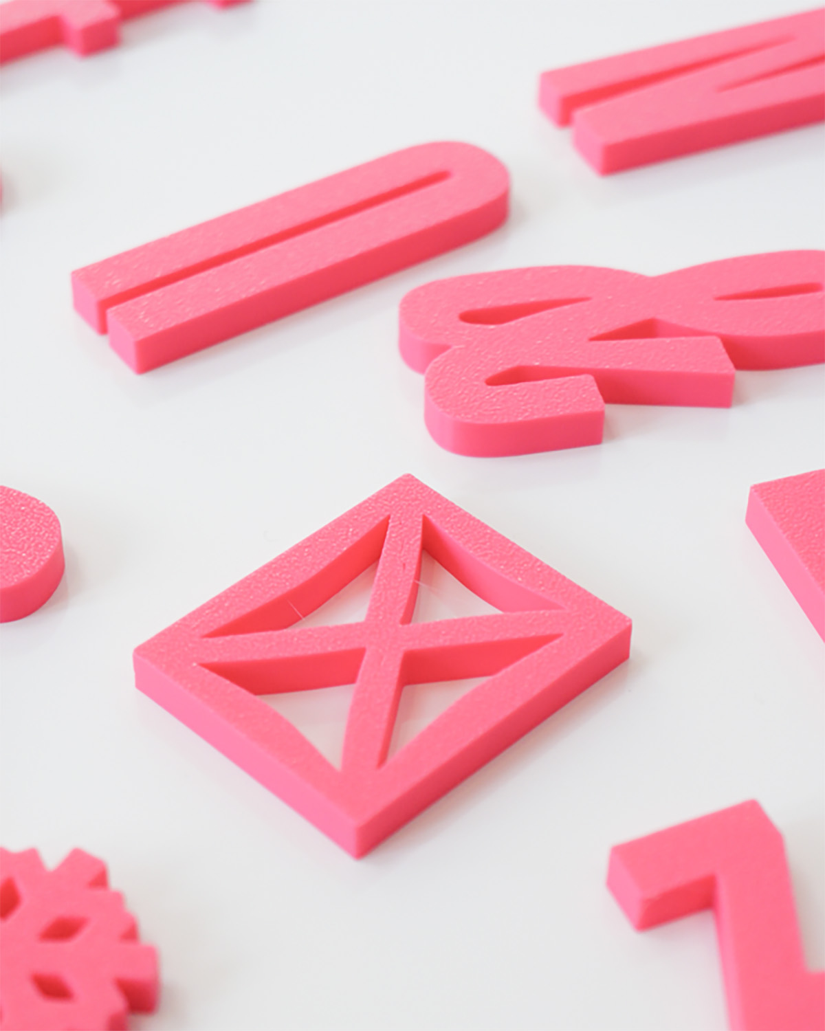 Y posteriormente encontramos imanes con la tipografía Rainer de Rüdiger. Éste último disponible en rosa y blanco. Comparten impresión 3D y personalmente no puedo esperar a poder auto-regalármelos para mi nevera.