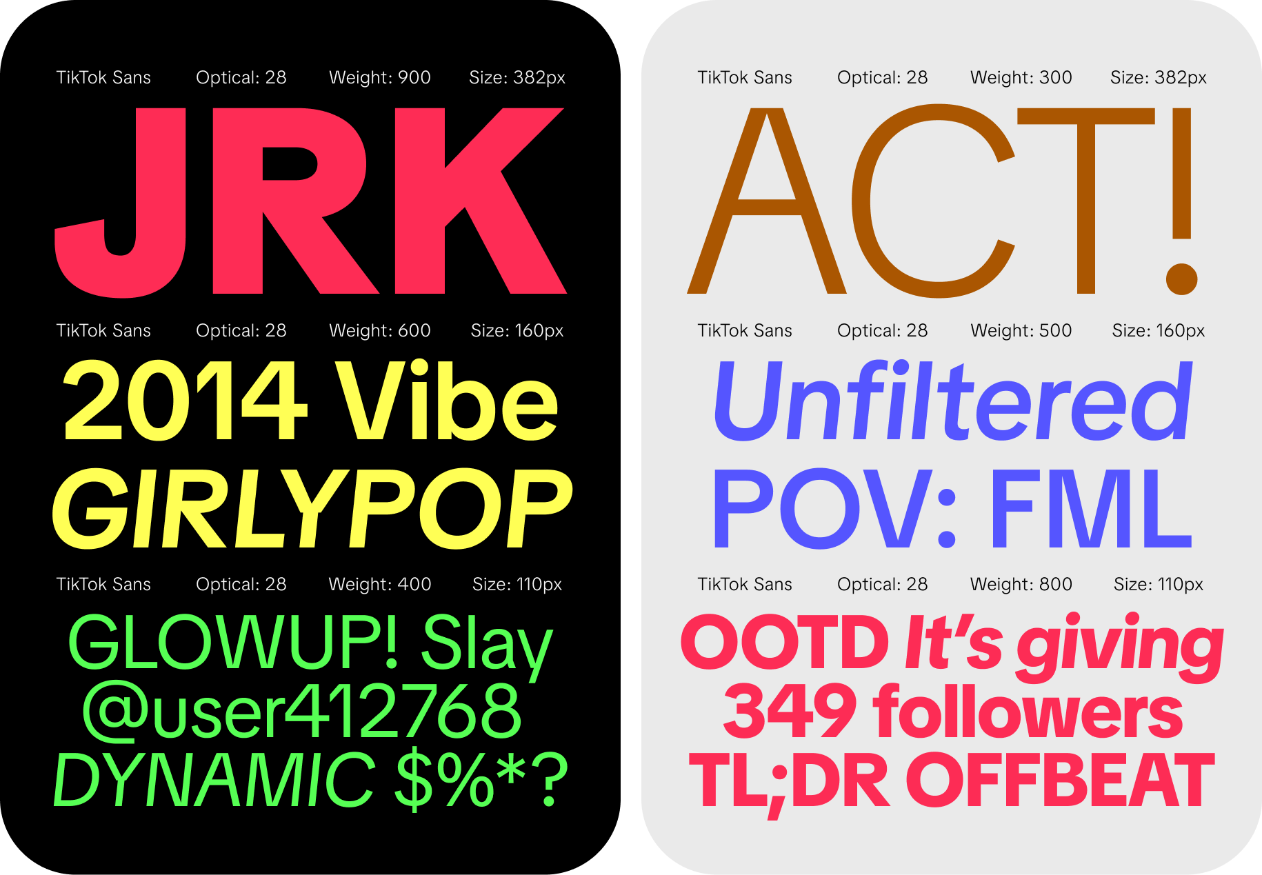 Ejemplos como el ya mencionado de Islands of Cocoplum, o este proyecto de Schick Toikka Type Foundry en el que diseñan la identidad visual y la tipografía corporativa para Suomen Kuvalehti, centenario semanario político y cultural finlandés, revelan el poder de elevación del valor de marca que proporciona una tipografía propia diseñada a medida. O el diseño de tipografía personalizada de Grilli Type para la red social Tik Tok, un sistema tipográfico de alta legibilidad para, a la vez que genera identificación de marca en su inmensa comunidad, adaptarse a todos los múltiples contextos donde está presente la marca.