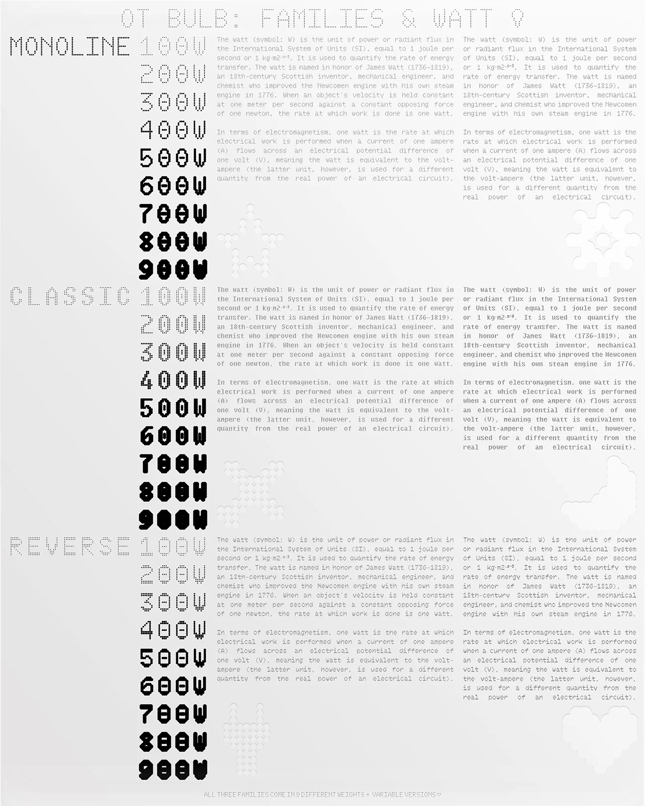 Una buen ejemplo de tipografías retrofuturistas lo podemos encontrar en el catálogo de Off Type, una plataforma alternativa de distribuición de tipografías puesta en marcha por Mathieu Desjardins, fundador de Pangram Pangram, para dar salida a tipografías «diferentes», o suavemente retrofuturistas como Bulb o 2049.