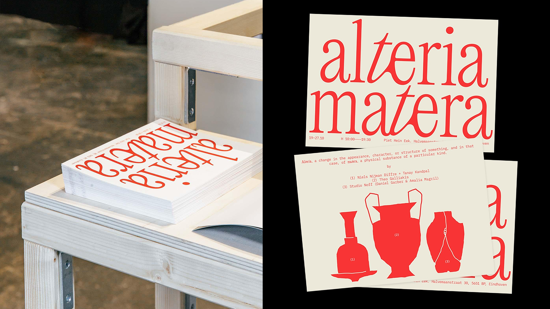 Dos excelentes proyectos elaborados con tipografías con serifas son, por un lado, este proyecto editorial de Laia Guarro, y por otro, este diseño de identidad visual elaborado por Alicia Moretto y Camilla Marani para la exposición Alteria Matera tomando como base la PP Editorial New, de Pangram Pangram.