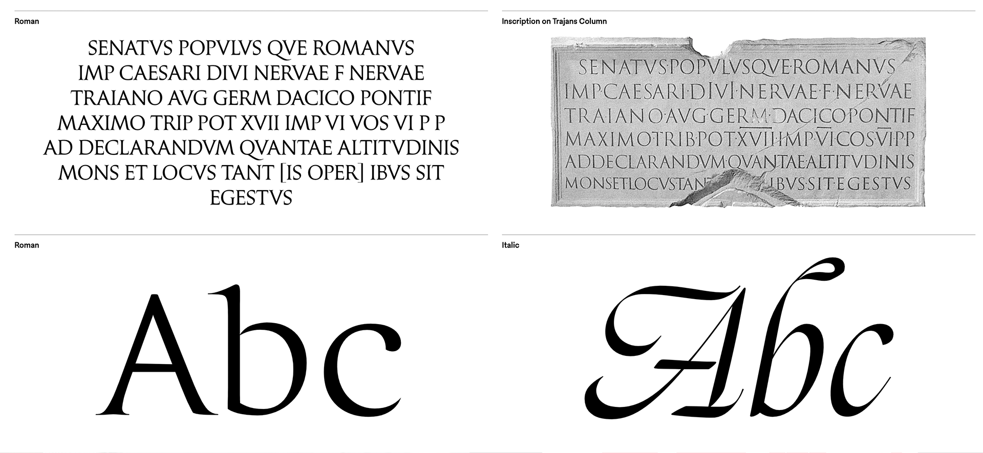 Las incisas, también denominadas lapidarias o glíficas, evocan las letras grabadas en piedra que proliferon en la Roma clásica y que tienen su máxima expresión en la Columna de Trajano (año 113), en cuya base se encuentra el paradigma de este estilo inigualablemente elegante y que sirvió de referencia para que Carol Twombly diseñara en 1989 para Adobe su célebre Trajan.