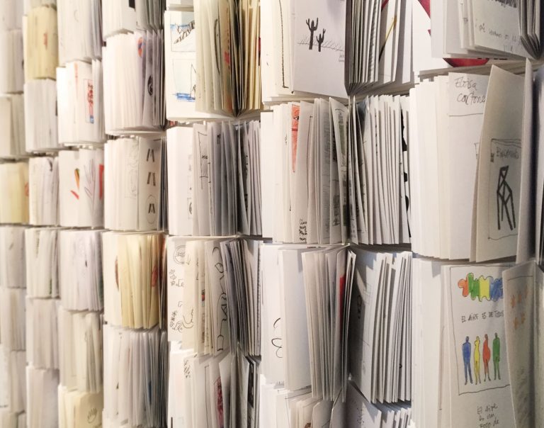 A lo largo de estos años algunas instalaciones han cambiado, otras han desaparecido y hemos ideado nuevas versiones para hacer que en cada sala adquiriera su propio potencial significativo. Por ejemplo, para el CAAM diseñamos una instalación con una «cascada de papeles» de unos 15 metros de altura. Sin embargo en el MUDE de Lisboa se convirtió en una enorme espiral por la que podías caminar (para llegar a su parte central debías pasear entre unas cortinas de papel y el recorrido para llegar al centro del espacio era de unos 4 minutos). También para el MUDE construimos una mesa de 15 metros de largo para presentar todos los bocetos del libro «El viaje del elefante» de José Saramago.