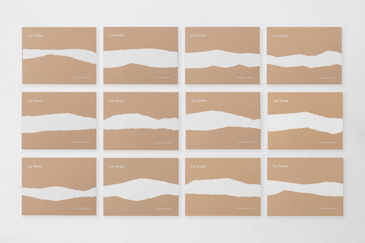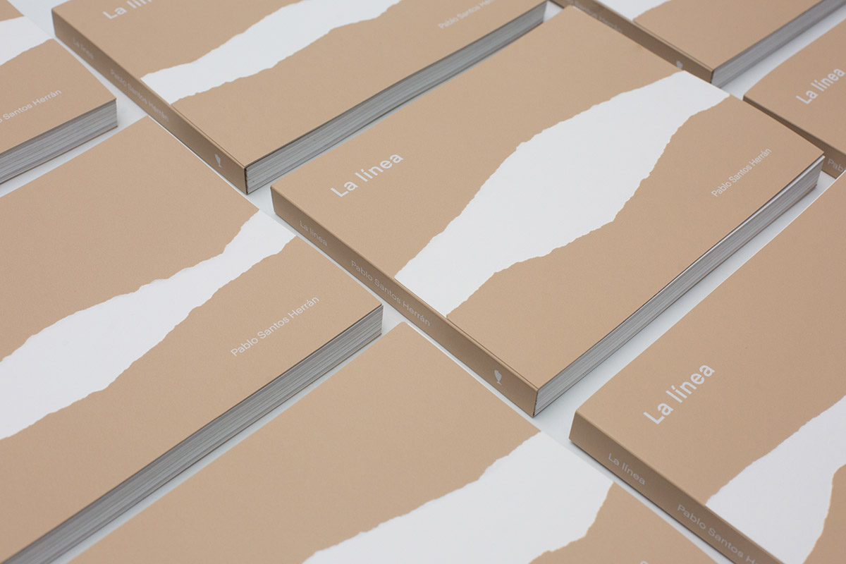 MP: Un libro llamado La línea, de Pablo Santos. Fue un proyecto personal que nació del trabajo y la colaboración conjunta. El libro cuenta, a través de un diario, mapas y fotografías, un recorrido a pie que hizo Pablo en Castilla y León, desde el pueblo donde nació su madre hasta el pueblo donde nació su padre. En la cubierta utilizamos el papel Curious Matter Ibizenca Sand, que tiene una textura muy particular y que hablaba de la tierra, de lo agreste, del camino. Trabajamos cada una de las cubiertas de manera individual, haciendo recortes con el Curious Matter Goya White para generar líneas diferentes en cada una de las portadas. De esta manera, cada una de las personas que se hizo con el libro, tiene su propia línea y una portada diferente.