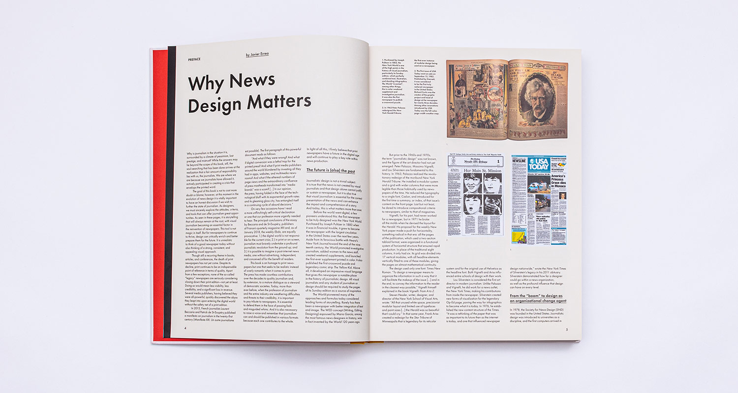 Editado nada menos que por el especialista en editorial periodístico Javier Errea, Newspaper Design. Editorial Design from the World’s Best Newsrooms, merece por derecho propio convertirse en una obra de cabecera en la estantería de cualquier diseñador, y más si se dedica al editorial.