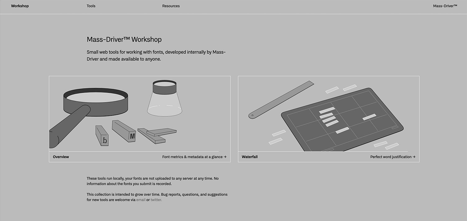 Mass-Driver es la fundición tipográfica digital del joven diseñador británico Rutherford Craze, casi recién egresado del máster Type and Media de la Royal Academy of Art de La Haya. Dada su todavía corta carrera profesional, su catálogo no es muy extenso, pero no cabe duda de que, por lo demostrado hasta ahora, tiene por delante un brillante futuro como diseñador tipográfico.