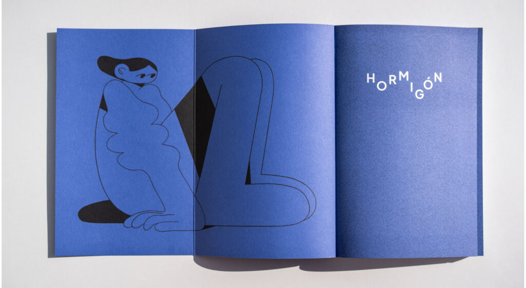 Hormigón, escrito e ilustrado for Jaume Vadell, es una metáfora sobre la ansiedad, relacionándola directamente con esa sensación física de vivir con hormigón en la cabeza, el cual no deja filtrar los pensamientos.