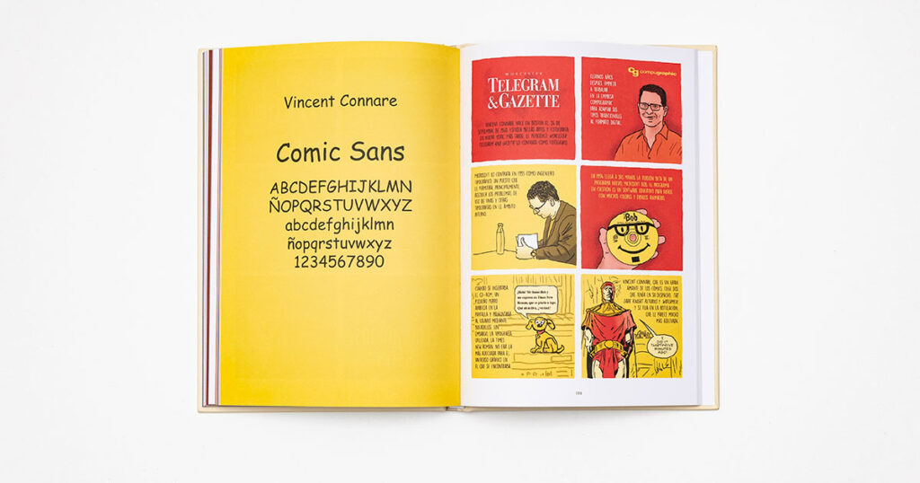 Valiéndose del formato comic, y con una perspectiva tan rigurosa como fresca, Caracteres recorre la vida y obra de más de una treintena de diseñadores tipográficos. Vaya por delante que la obra nos ha encantado, ya que equilibra de forma sublime aspectos más desenfadados y anecdóticos, con la rigurosidad y veracidad del contenido.