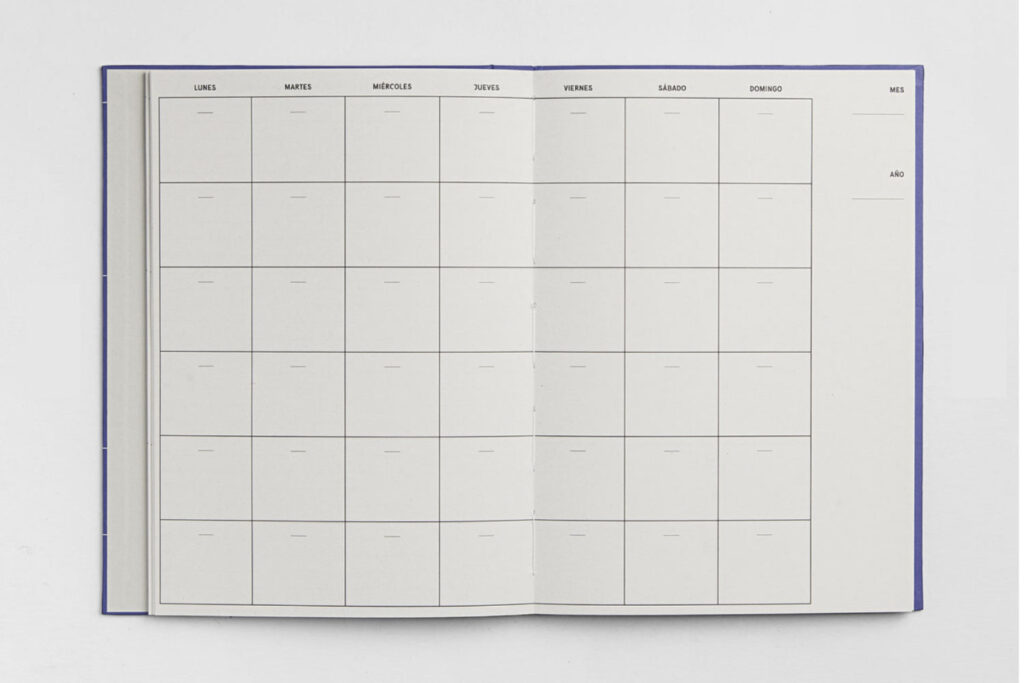 El minimalismo y la limpieza los encontramos en la organización a semana vista de sus páginas interiores, con mucho espacio en blanco para escribir.