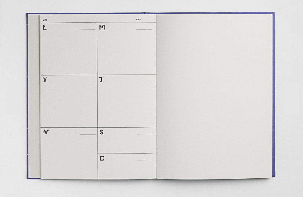 La marca de papelería para amantes de lo analógico, nacida de la unión de Impresum y Estándar estudio, nos ofrece una opción sin fecha de caducidad. Semana vista en la página izquierda y una hoja en blanco a la derecha para apuntar, dibujar y reflexionar. Con ello, Colla Paper nos anima a usar menos pantallas y volver más al papel y el boli.