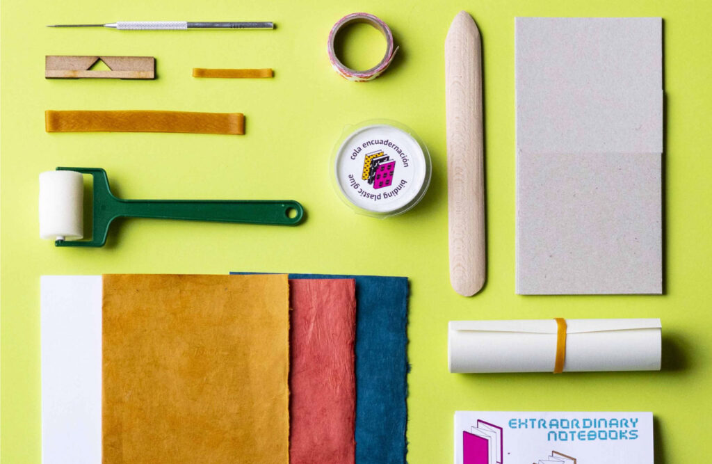 Cuadernos extraordinarios es un kit que te enseñará cuatro tipos de cuadernos plegados para que puedas usar el que encajes más tus proyectos: geométrico, mariposa, acordeón continuo y acordeón por partes.