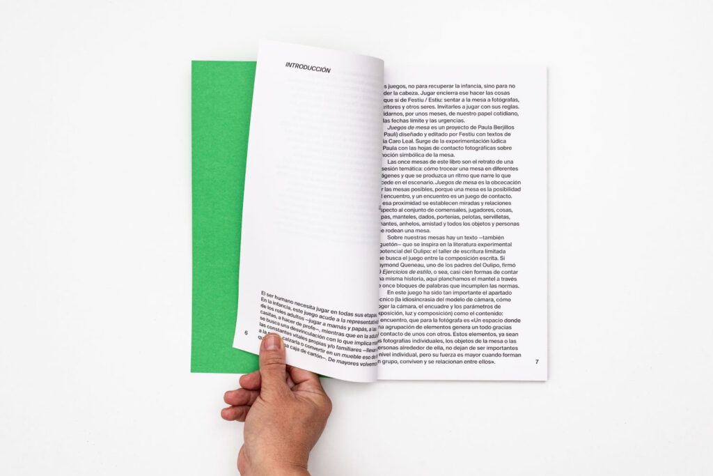 Proyecto de Paula Berjillos diseñado y editado por Festiu con textos de Lidia Caro Leal, que surge de la experimentación lúdica de Paula con las hojas de contacto fotográficas sobre la noción simbólica de la mesa.