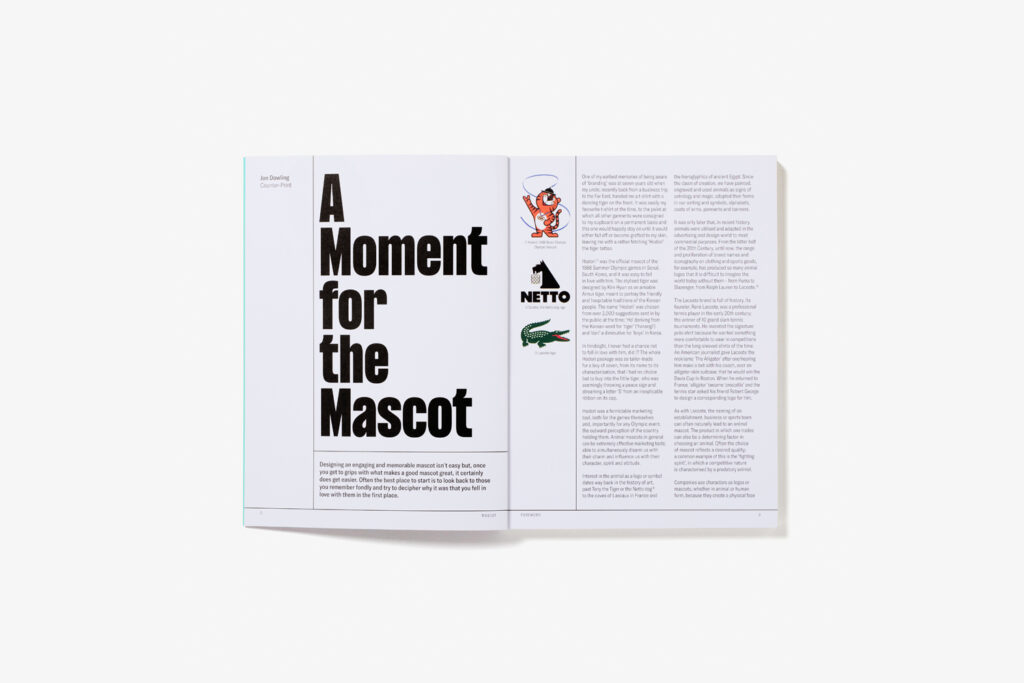 Una propuesta original y divertida la encontramos en la publicación de Mascot, un libro que celebra el uso de mascotas en el diseño gráfico contemporáneo.