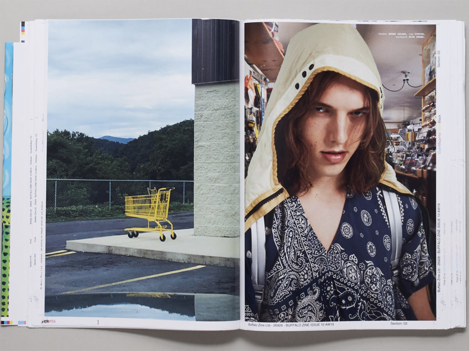 Buffalo zine, emblema del nicho moda independiente, optó por dejar calculadamente «inacabado» su entrega número 10, y convertirla en una suerte de borrador repleto de anotaciones manuales, y confeccionado a base de múltiples cuadernillos sin guillotinar, marcas de preimpresión incluidas.
