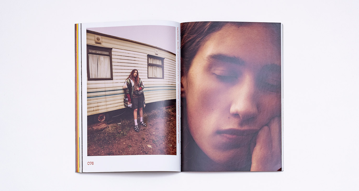 Para la cabecera, Juan Martín se ha valido de la Monument Extended, una bold extended para conferir una apariencia sólida y contemporánea. A su vez, la portada se prodiga en numerosos detalles como el código de barras integrado en un cajetín (con toda la información relativa a precio, web, etc.) además de la temática de cada número: «Survivor» en esta ocasión, y que se revela como el nexo de unión de todo el contenido. Esto se aprecia en recursos como el uso de coordenadas, looks, estética, localizaciones, etc.De hecho, para el shooting de portada, el equipo encargado de la producción se trasladó desde Londres a Canarias. Además del reportaje fotográfico, aprovecharon para crear contenido audiovisual para medios digitales.