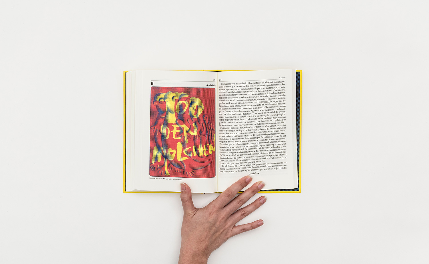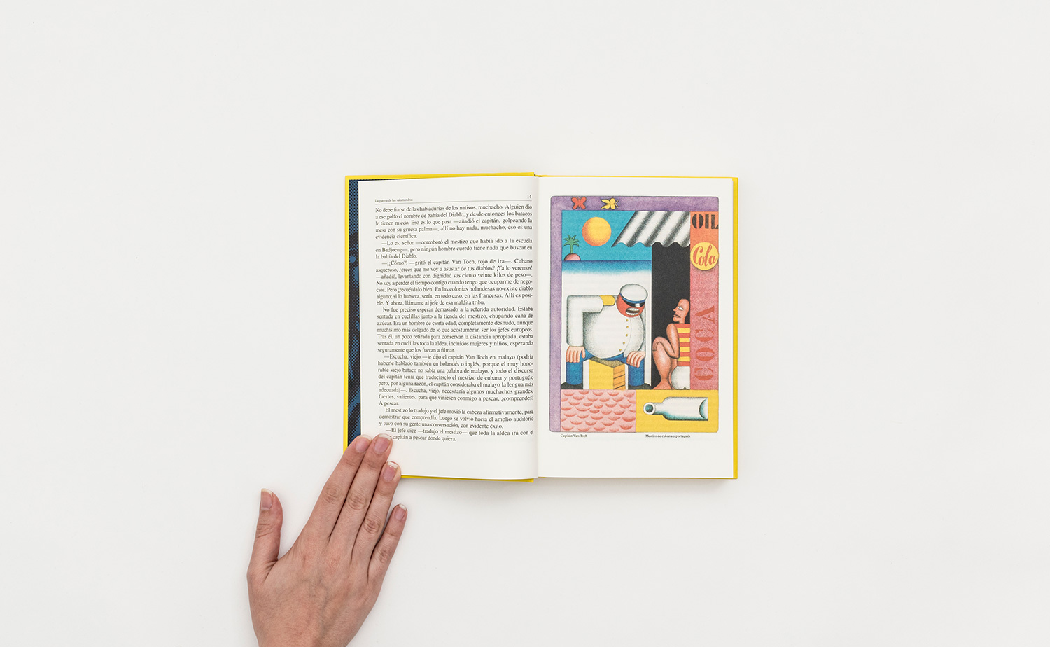 Estamos ante una historia inusual en apariencia, pero con un trasfondo que es aplicable a cualquier rincón de nuestro planeta. Esta novela de Karel Čapek (1890-1938) nos acerca a una fábula en la que los humanos, una vez más, tratan de sacar tajada de la explotación de otros seres, en este caso, las salamandras, que viven pacíficamente en la isla del Diablo. Y, una historia que de entrada ya incita a su lectura por lo curiosa y original, nos deja KO con el trabajo de ilustración de Hans Ticha (1940), inspirado en el Pop Art, el cubismo y el cartelismo ruso, y con un trabajo muy interesante en cuanto a tipografía.