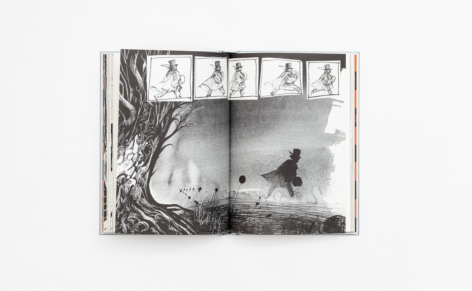 Por su parte, Hillmann, que diseñó carteles para cintas de celebridades como Luis Buñuel o Akira Kurosawa, invirtió siete años en realizar 250 acuarelas en gama de grises para ilustrar esta novela. Su objetivo: secuenciar la historia a la manera del cine. ¡Y vaya si lo consiguió!