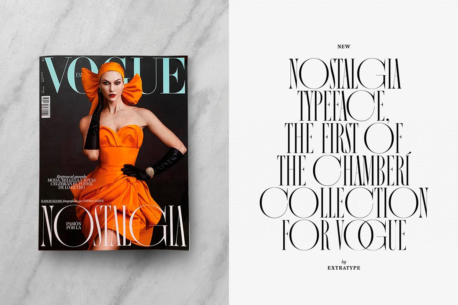 Chamberí (que consideramos una de las mejores tipografías de 2020) ganó el Laus de Oro en 2019. Pero la relación tipográfica de Extratype con Vogue no acaba ahí. Nostalgia es la tipografía diseñada para el número especial consagrado a la pasión por los códigos estéticos de décadas pasadas.
